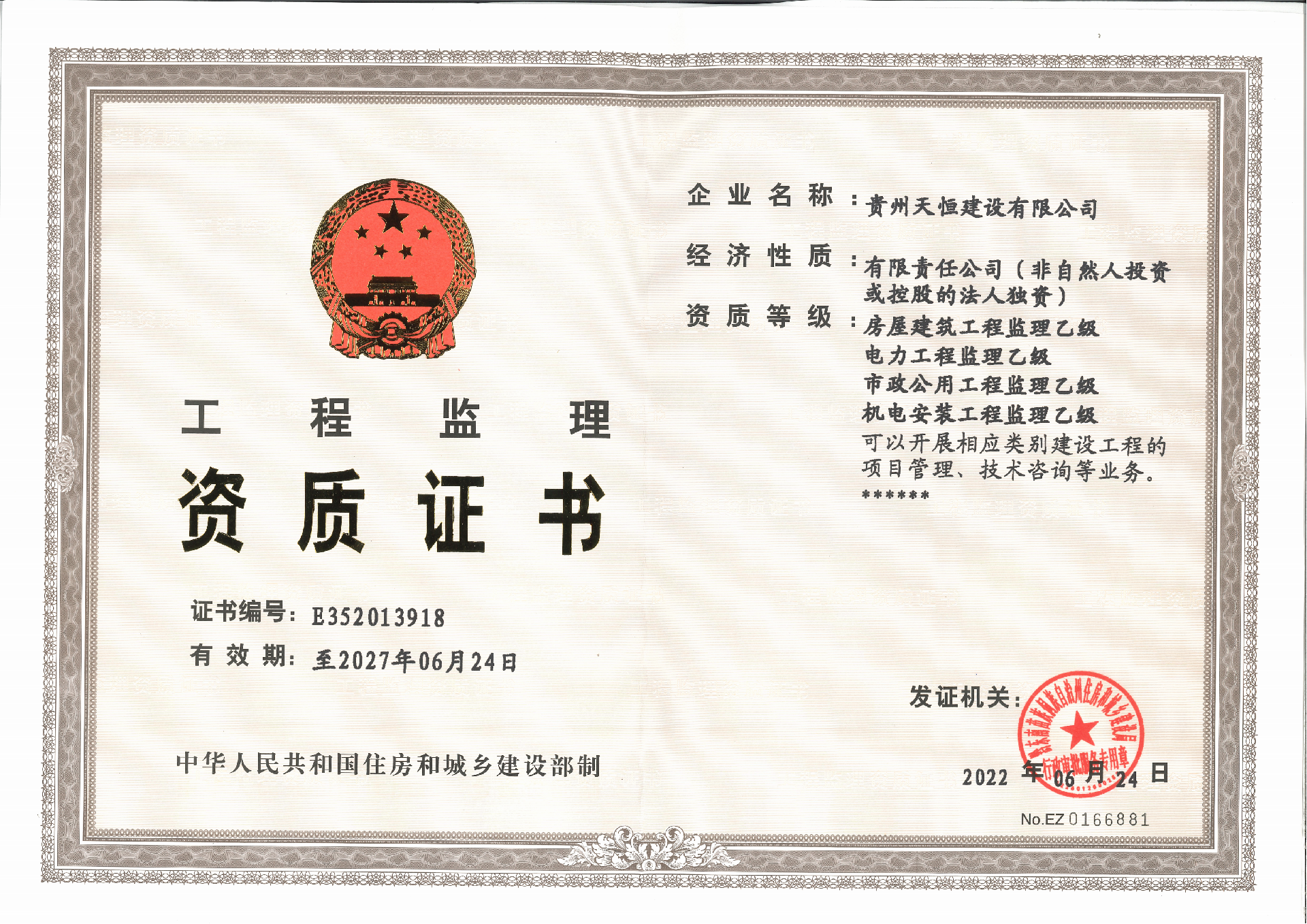 監(jiān)理資質(zhì)E352013918: