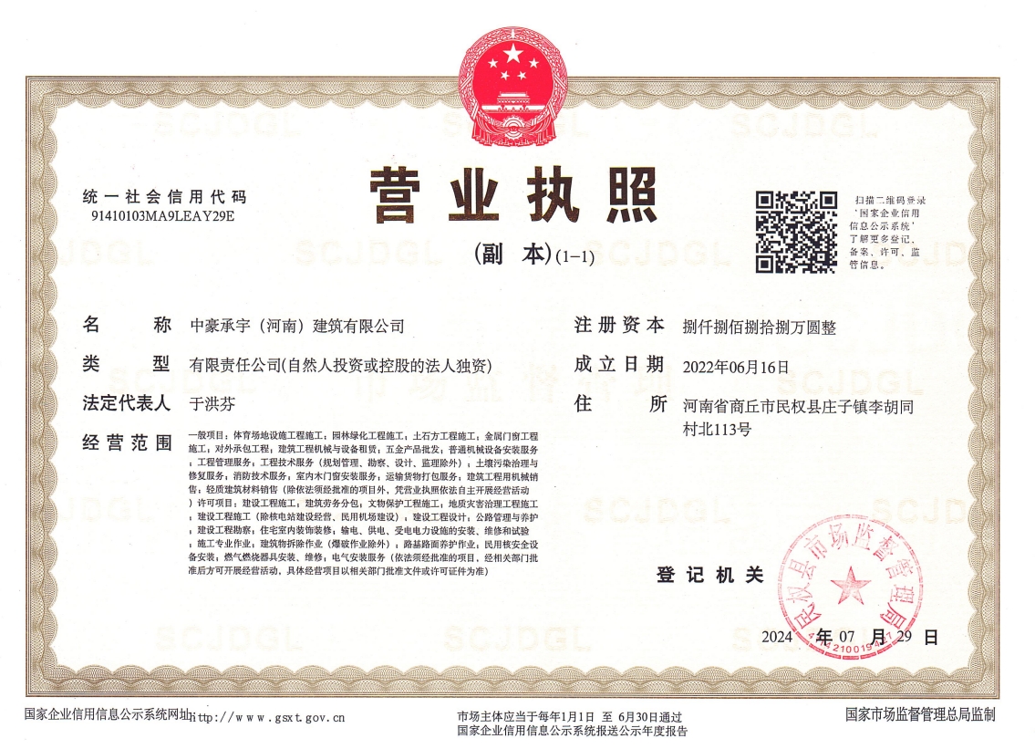 中豪承宇(河南)建筑有限公司歡迎您工程資質加盟分公司